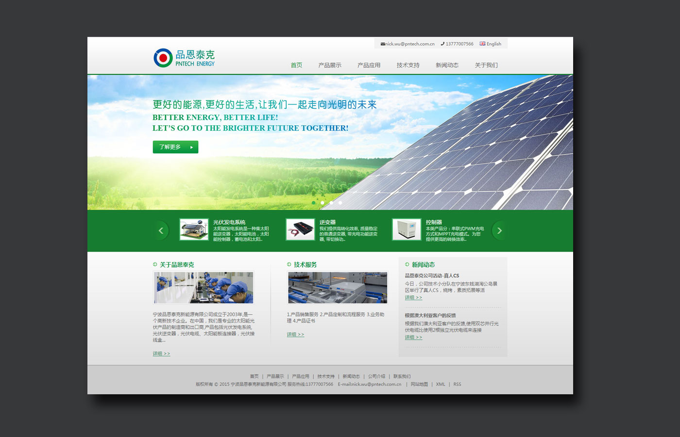 寧波品恩泰克新能源有限公司成立于2003年,是一個高新技術(shù)企業(yè)。在中國,我們是專業(yè)的太陽能光伏產(chǎn)品的制造商和出口商,產(chǎn)品包括光伏發(fā)電系統(tǒng),光伏逆變器,光伏電纜、太陽能板連接器,光伏接線盒,安裝工具等。除此之外,我們還提供買家采購服務(wù)和產(chǎn)品認證服務(wù)。
